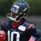 The model is calling for Texans wide receiver DeAndre Hopkins to shake off a foot injury and lead all Houston receivers with six catches for 100 yards and a touchdown on Sunday. But the simulations also point to a significant role for Thomas, who catches four passes for 50 yards in his Houston debut.