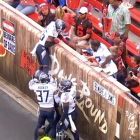 This @budlight’s for you?@RealLoganRyan and the @Titans got doused by beer by a @Browns fan after the Malcolm Butler pick-6. 🍺 pic.twitter.com/mQ4QAO8ztM