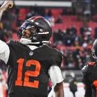 - Sanders coming off a massive performance. Despite the loss, rookie quarterback Shedeur Sanders was fantastic last Sunday. He became the first player in Browns history to throw for 350 yards, three touchdowns and rush for a touchdown in a game. The only other rookie quarterback to accomplish this feat in NFL history was Joe Burrow. Sanders has grabbed ahold of the starting job, and has thrown a touchdown in all three of his NFL starts.