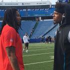 Fast forward to Thursday night. The Bills were hosting the Panthers in Buffalo for a Week 1 preseason game. This meant, naturally, Benjamin and Newton on the field at the same time before the game. Things got awkward!