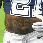 When Dallas Cowboys running back Ezekiel Elliott juked his way into the end zone during last week's "Sunday Night Football" matchup against the Los Angeles Rams, his celebration sent shockwaves around the league. No, he didn't dance or use the pylon as a prop -- the three-time Pro Bowler simply lifted his shirt to reveal a new tattoo. Right there plastered on his belly were the words "Feed Me," complete with a spoon.