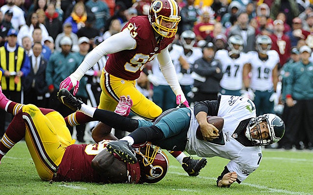Kelly can’t afford to have an immobile Bradford getting whacked around because there are too many other issues. His reconfigured offensive line is overrun most weeks, and the high draft picks he used on receivers Jordan Matthews and Nelson Agholor have yielded no immediate dividends. Players he identified to boost the defense -- Kiko Alonso and Byron Maxwell -- have been either injured or simply ineffective. Kelly’s new kicker, Caleb Sturgis, added insult by missing a big kick in his debut with the club.