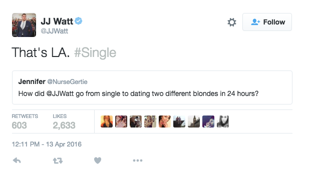 Anyway, a few days after the "date," Watt made it very clear that he's single.