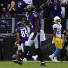 The Ravens quarterback certainly didn't play his best in this one, which wasn't needed given that the Ravens rushed for 187 yards -- 51 off the legs of Jackson. He also threw for a touchdown in the win, his 42nd consecutive game with either a passing or rushing touchdown -- the fifth-longest streak in NFL history. Jackson finished 19 of 27 (70.4%) for 167 yards with a touchdown and two interceptions, his first multi-interception game since Week 2 (also a Ravens win).