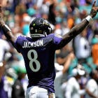 Jackson became the second quarterback in franchise history with 300 yards and five touchdowns in a game (Joe Flacco was the other) as the Ravens set franchise records for points (59), yards (643), and margin of victory (49) in a 59-10 win over the Miami Dolphins. He was the first player with at least five passing touchdowns in a season opener since Peyton Manning (2013).