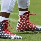 The Panthers quarterback usually goes superhero with his cleats but it's stars and stripes on Saturday
