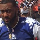 Here's Wall in a Cowboys jersey, signing a Cowboys banner that Fed Ex Field before the game.