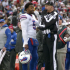 The controversial touchdown -- that wasn't actually a touchdown -- happened late in the first half of the Bills game in New England, when Tyrod Taylor appeared to hit Benjamin for a 4-yard score.