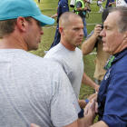 As most people know, the first rule of taking a group photo is “never be next to anyone who’s wearing a Hawaiian shirt.” John Fox and Anthony Lynn got the short end of the stick in this photo.
