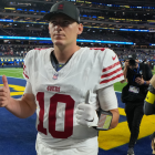 Because of that, Jones got to offer a glimpse of what might've happened if there had been a partnership with one of the top offensive minds in the game from the jump. Jones finished 33 of 49 for 342 yards and two touchdowns and led the 49ers to an improbable win over their NFC West rival as an 8.5-point underdog to help his team move to 4-1.