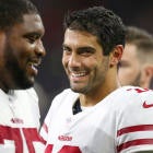 Garoppolo would finish the night going 10 for 12 for 136 yards, one touchdown and an interception, but the pick wasn't necessarily his fault.