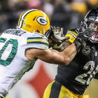 The Steelers were without rookie second-rounder pick JuJu Smith-Schuster on Sunday as he recovered from a hamstring injury. Instead, Martavis Bryant got the start and finished with a respectable four receptions for 40 yards and a touchdown, which was good for third best among Steelers pass catchers against the Packers. Not surprisingly, Brown was first, and behind him, one of the league's most versatile players: running back Le'Veon Bell.