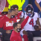 Patrick Mahomes, Deshaun Watson share hilarious sideline exchange during Chiefs-Texans NFL kickoff game