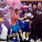 Late in the first half of the game, the protestor ran onto the field while carrying a pink smoke bomb. As he ran down the Rams' sideline, Takk McKinley and Bobby Wagner stepped in and knocked the man to the turf so security could detain him.