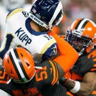 Have you seen their offensive line? Whatever is happening there is not good, and on Sunday night, it contributed to Mayfield getting happy feet and rolling out of pockets that had yet to be disturbed. Cleveland's offense as a whole has yet to find a consistent rhythm through three games, and a good chunk of the blame should be assigned to coach Freddie Kitchens, who also fumbled a crucial late-game fourth-down call by running a draw with nine yards to go. The Browns definitely didn't lose because of their defense, which gave Mayfield and Co. more than enough opportunities to steal one. The offense, which drew all the hype this offseason, remains issue No. 1.