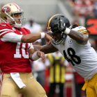 Pittsburgh, featuring new starting quarterback Mason Rudolph and new free safety Minkah Fitzpatrick, had the lead on three different occasions, including after Diontae Johnson's 39-yard touchdown catch to go up 20-17 with just over 10 minutes remaining. The Steelers' defense, stellar in the first half, allowed three second half touchdowns, including Jimmy Garoppolo's five-yard, game-winning pass to Dante Pettis with 1:15 left.
