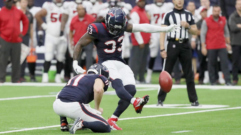 With Fairbairn out, the Texans turned to Ogunbowale for their kickoffs, before letting him try the 29-yard field goal.