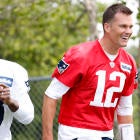 Approximately eight of Brady's new teammates joined him for an unofficial practice