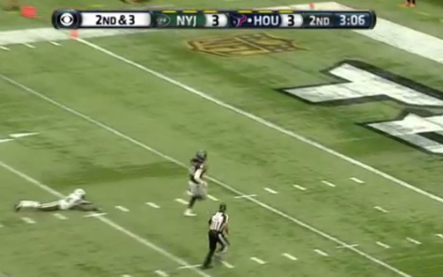 Most of those yards came when Hopkins torched Revis on the long ball and combined with T.J. Yates for a 61-yard touchdown. By the end of the play, Revis was flat on his stomach while Hopkins coasted into the end zone.