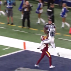 Dez had a quiet first half against Washington as the Dallas offense once again struggled to get untracked, but he came alive on the Cowboys' second drive of the second half. On an 11-play, 84-yard touchdown drive, Dez caught a 24-yard pass for a first down to move the 'Boys into scoring position, then soared over the top of Bashaud Breeland for an old-school Dez Bryant-style touchdown catch.