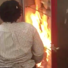 It's worth pointing out that the woman didn't seem overly concerned about the state of the food. Call it composure, call it indifference, but if she broke a sweat it was only because of the raging flames. At one point, she tried to blow on it like it was a dusty N64 cartridge and not a full-fledged fire. Shockingly, it did not work.
