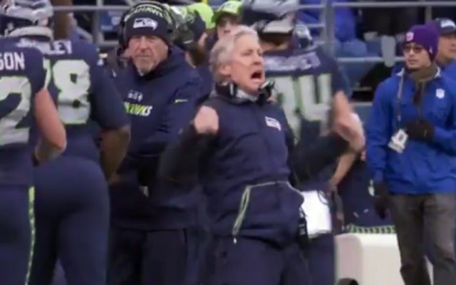 Pete Carroll went crazy as he celebrated a Russell Wilson touchdown.