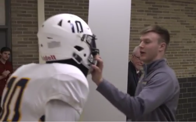 The Browns recently granted a high school $25,000 to use on new helmets, with Cameron Erving appearing on stage at the school to reveal a look at those new helmets modeled by a mannequin. Except that mannequin wasn't really a mannequin.