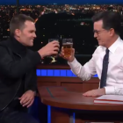 WATCH: Tom Brady inhales beer, dusts Stephen Colbert in a chugging contest