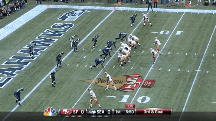 Below, Kaepernick's receiver -- the one shooting up the right seam -- was open for a touchdown against a Seahawks defense that used a safety to patrol the middle of the field while the corners played zone on the outside. On the right, near Richard Sherman, Boldin stopped near the sideline. Sherman hung with him, which freed up the slot receiver down the field.