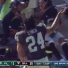Marshawn Lynch's home debut for the Oakland Raiders couldn't have gone any better. The Raiders aren't just sticking it to the New York Jets on Sunday, Lynch also got involved by scoring his first touchdown with the Raiders. Then, with the Raiders winning big in the fourth quarter, Lynch decided to provide some sideline entertainment for the crowd at the Coliseum.