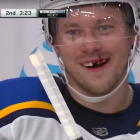 LOOK: Blues' Vladimir Tarasenko appeared to be very excited to lose a tooth during play