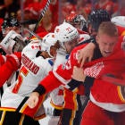 WATCH: Old school brawl breaks out during Flames-Red Wings game