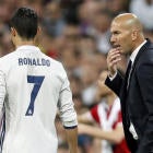 Before the game even hit the hour-mark, Real Madrid led APOEL 6-0 and Ronaldo had two goals. Here's his first, a fantastic header: