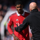 For Thursday's quarterfinal first leg, Martial seems likely to be handed the center forward's role, flanked by Sancho and Antony, though the industry of Wout Weghorst could also come into Ten Hag's consideration. Between them that quartet have 21 goals in all competitions this season, one more than Rashford since his return from the World Cup.