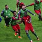 Ronaldo was taken off in the first half with a knee injury, and Portugal weathered the storm in regulation and extra time, occasionally getting a look on goal.