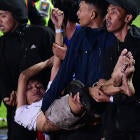 Several brawls between rival fans took place inside the stadium as Peresbaya Surabaya faced Arema Malang. Fans were seen throwing bottles and objects at players and officials. Tear gas was used by riot police, which led to panic in the crowd, according to the report.