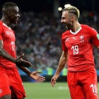 Switzerland survived, and then it pounced. In the 31st minute, a cross sent in from the side by Stephan Lichtsteiner was headed back into the middle of the box by Breel Embolo. The ball fell to Blerim Dzemaili, who buried the bouncing ball from in close. Switzerland -- again, only needing a tie to advance -- had a 1-0 lead over Costa Rica.