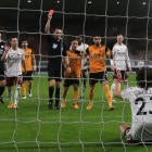 In the dying embers of the first half, Wolves' Willian Jose was able to make it into the opposing penalty box, but went to ground with one David Luiz hot on his tail. Referee Kraig Paulsen flashed a red card at the Brazilian defender for allegedly clipping the last man on goal with the ball.