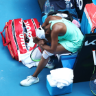 Late in the opening set of Venus Williams' second-round Australian Open match against Sara Errani, the 40-year-old injured her ankle and knee after am awkward stumble on the way to a volley near the net. It looked to be the kind of knock that would take her out of the tournament, given that she had to temporarily use her racket to help her walk to the bench.
