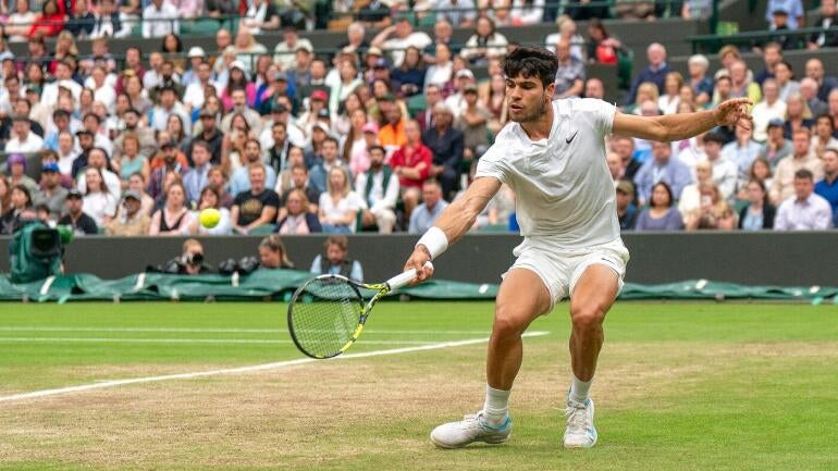 Alcaraz looks to win his third Wimbledon championship and second Grand Slam event in a row when he plays his second-round match on Wednesday against Oliver Tarvet. Alcaraz, 22, has been dominant at Wimbledon, posting a 19-2 all-time record there after his first-round win over Fabio Fognini. He has been nearly unstoppable on grass, posting a career 30-3 mark on the surface.